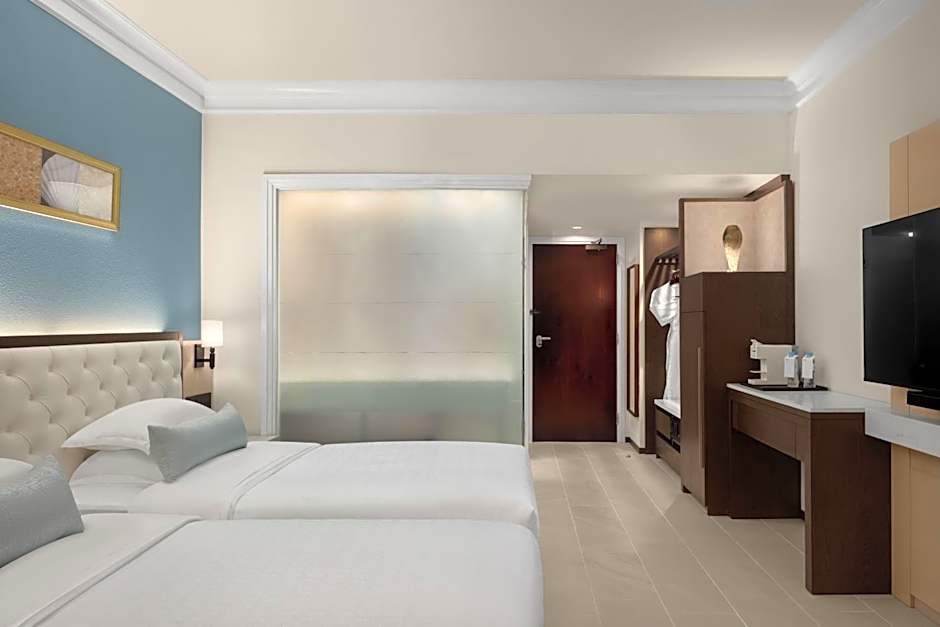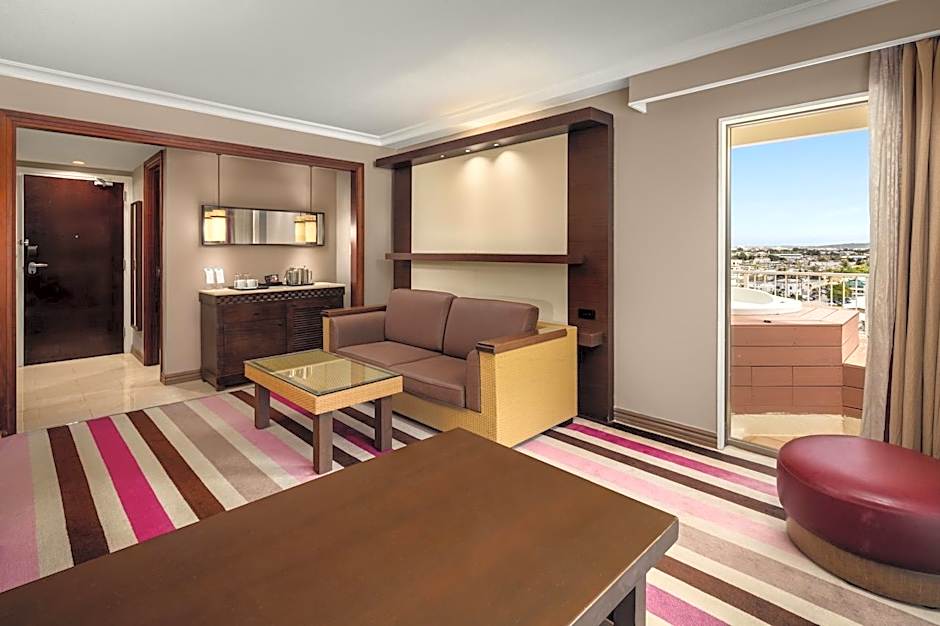 The hot tub is a top feature of this suite. The spacious suite has 1 bedroom and 1 bathroom with a bath and free toiletries. The air-conditioned suite features a flat-screen TV with cable channels, a mini-bar, a tea and coffee maker, executive lounge access as well as sea views. The unit has 2 beds.